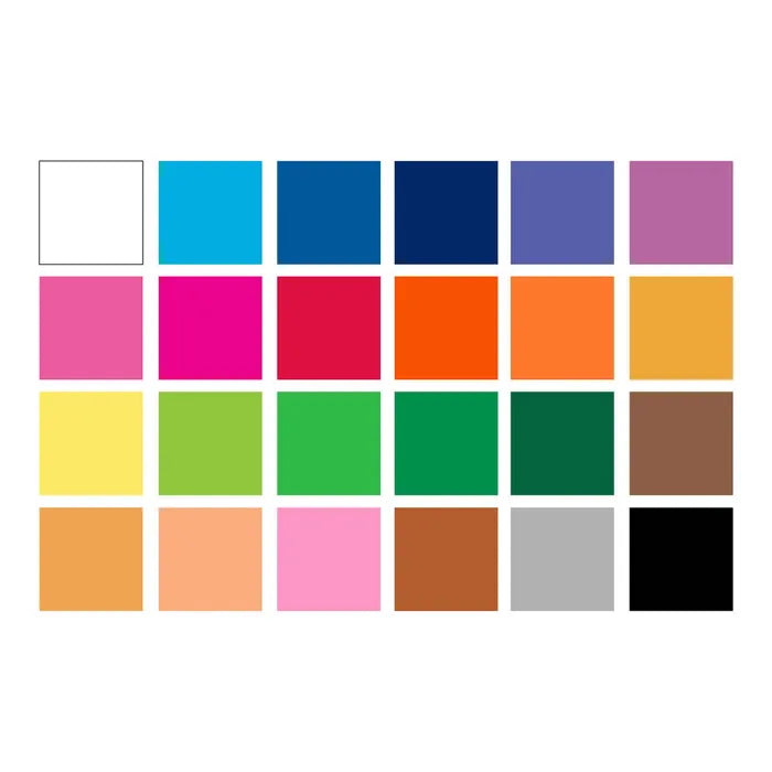 - Farben: weiß, chromgelb hell, chromgelb dunkel, orange, orange dunkel, krapplack rosa, fleischfarbe dunkel, karmin rosa, magenta hell, karmoisin, geraniumrot hell, grasgrün, maigrün, smaragdgrün, indigo dunkel, kobaltblau grünlich, indanthrenblau, helioblau rötlich, blauviolett, rötel, lichter ocker, umbra natur, ocker, schwarz